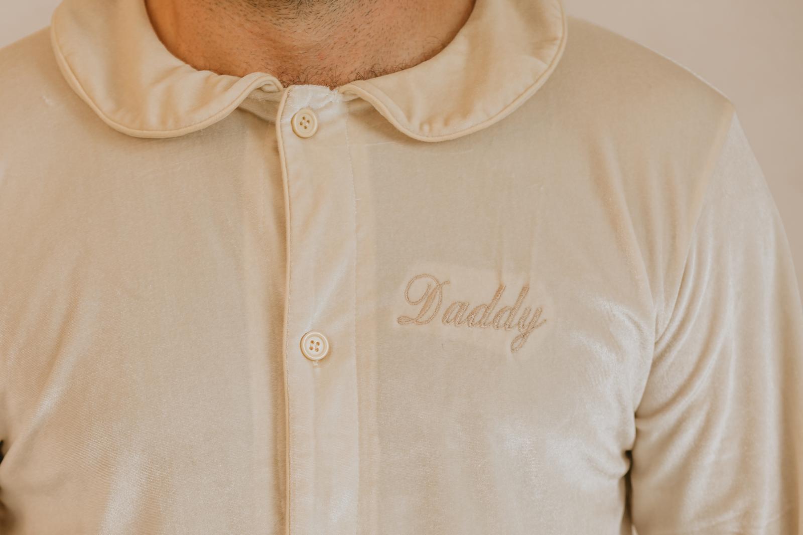 Indulge in Pretty Personal's Luxury Cream Velvet collection for men. Matching with the ladies or gentlemen in your life or just wanting to sleep in comfort and style. These pyjamas have been meticulously crafted from the finest velvet. They have a buttoned-down front with long sleeves, matching straight leg pants and are finished with contrast cream piping along the cuffs and ankles adding a subtle but stylish accent.