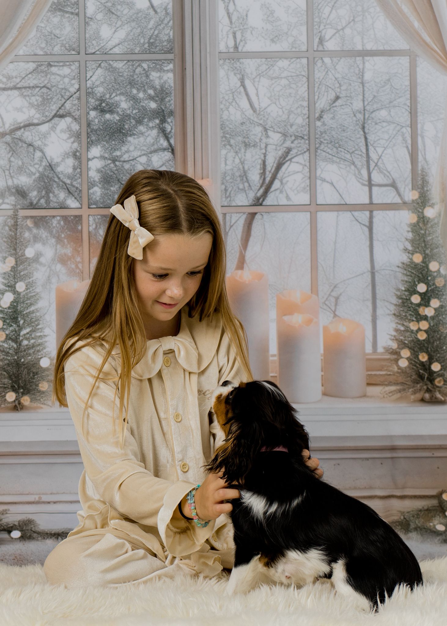 Girls Luxury Cream Velvet Bow Pyjamas